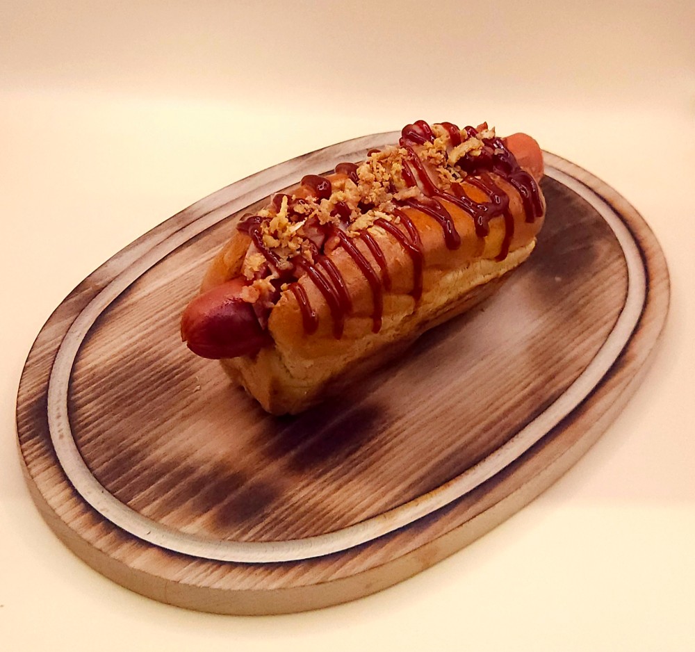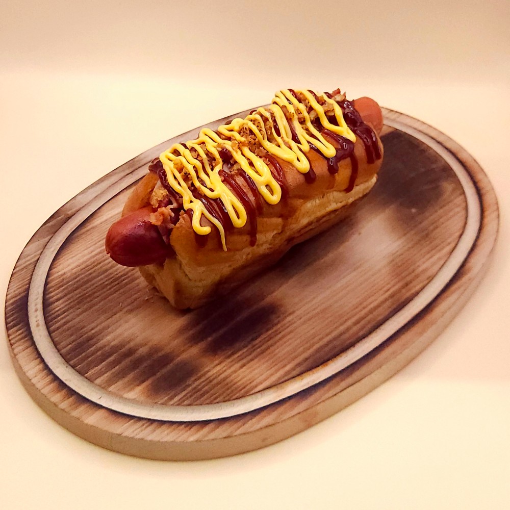 Хот дог BBQ з беконом та кріспі цибулею