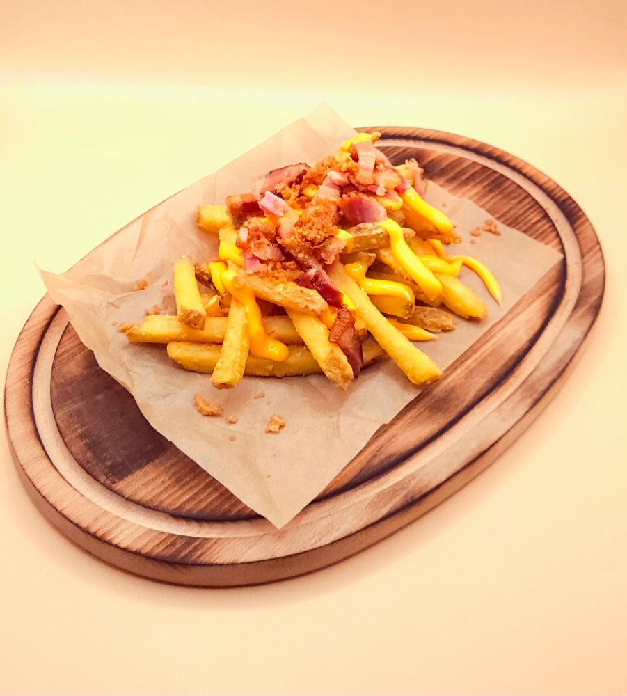 Картопля фрі з сирним соусом та беконом