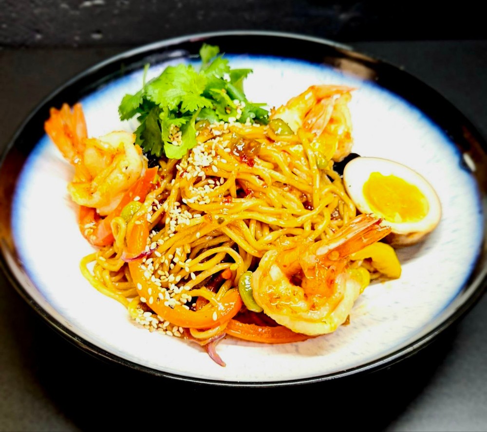Яєчна локшина з креветкою