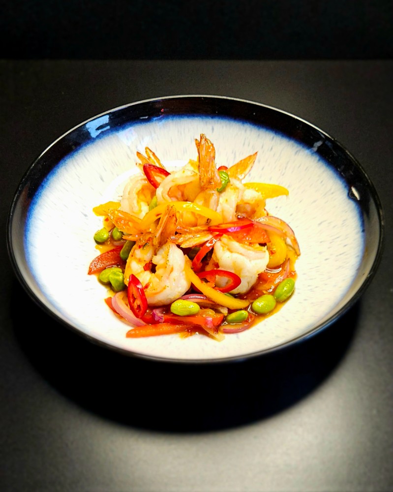 Смажені креветки в соусі солодкий чілі