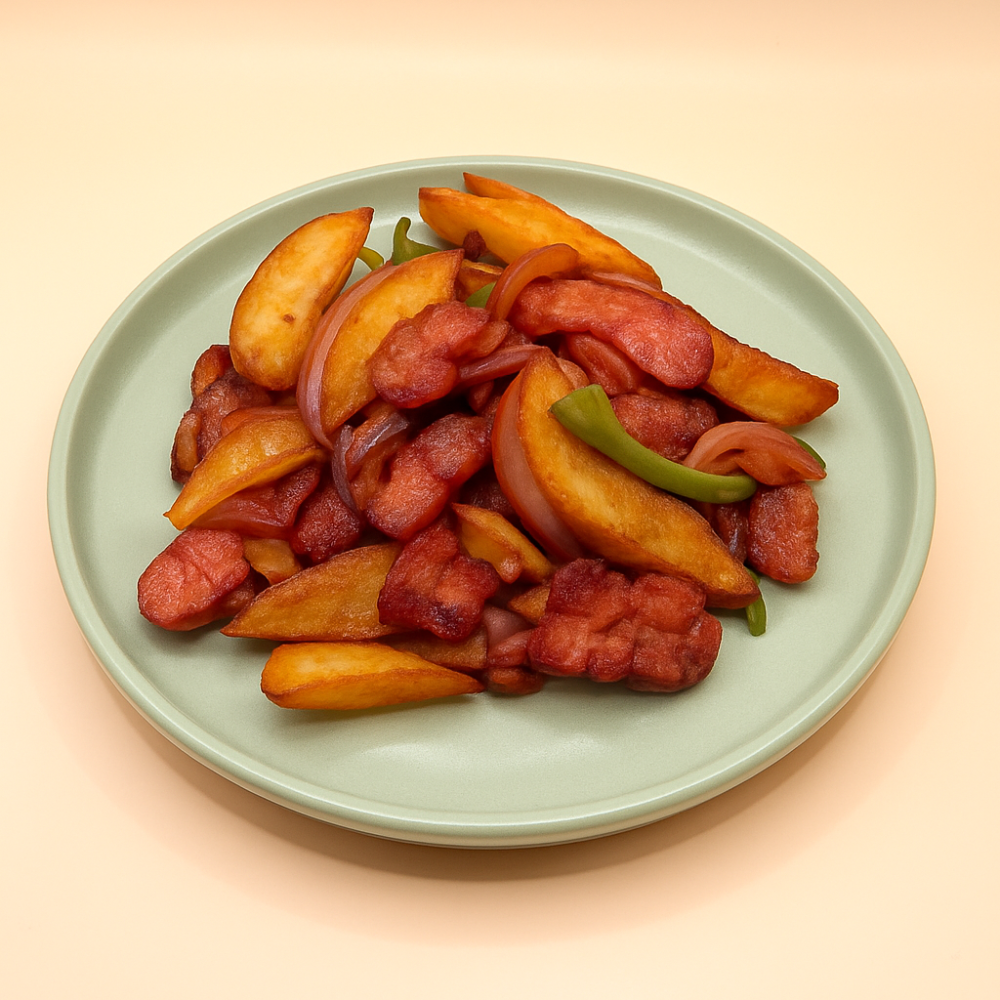 Картопля по-селянські зі смаженими беконом